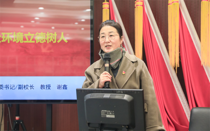 揭牌仪式后,谢鑫以《党建引领 全环境立德树人》为题讲了一堂微党课。她从“有为”和“有位”的辩证关系、“不是”和“是”的逻辑关系、新时代新征程党组织的使命任务三个方面谈了对党建工作的认识。同时,从党建引领、实现全环境立德树人出发,提出了解决好思想认识问题、机制建设问题、党业融合问题、队伍建设问题等四个方面的思路和举措,就如何构建完整高效的党建工作体系,实现高质量党建引领学校高质量发展,为做好中学党建工作给出了专业性和针对性的指导。