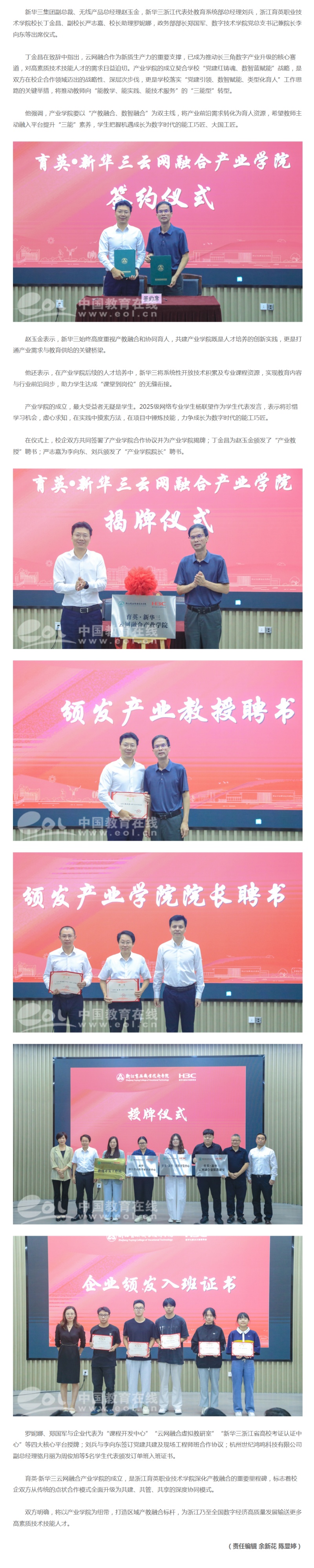【中国教育在线】校企协同打造数字人才培养新标杆 育英·新华三云网融合产业学院成立