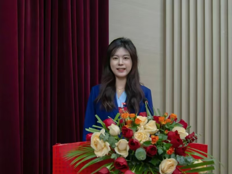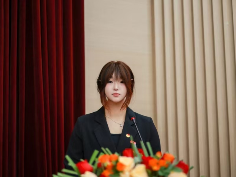 杭州市学联驻会主席苏李依致辞。她代表杭州市学联向大会的召开表示祝贺,对学校学生会在学校党委的正确领导、校团委的悉心指导下,为推进学生与校园发展共进共促做出的贡献表示肯定。