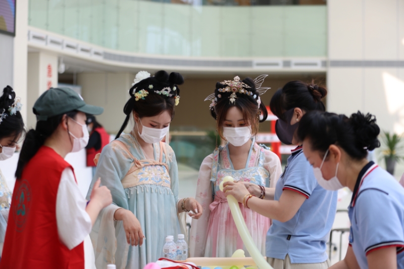 随着悠扬古典的音乐缓缓响起,身着精美汉服的同学们,迈着优雅的步伐款款走来。广袖飘飘,衣袂飞扬,将古典文化的魅力展现得淋漓尽致。孩子们看得目不转睛,仿佛穿越时空,走进了古代的梦幻世界。表演结束后,孩子们纷纷围拢过来,好奇地抚摸着汉服,询问着关于汉服和古代文化的问题,同学们也耐心地一一解答,在孩子们心中种下了传统文化的种子。