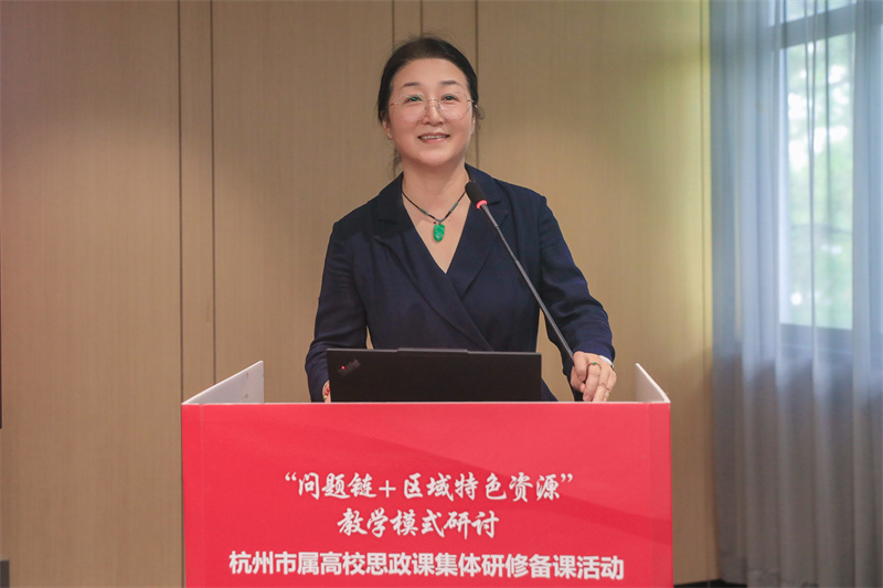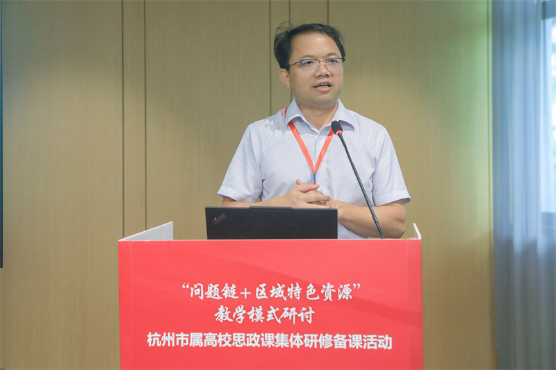 杭州市教育局高等教育处(交流合作处)副处长蔡宇冠在致辞中指出,此次思政课集体研修备课活动是深入学习贯彻习近平总书记重要指示精神、破解教学难题、提升思政课质效的真招实策,是思政教育模式创新的“试验场”、高校协同育人的“连心桥”与教师专业成长的“加油站”,能让理论教学更接地气、更有温度,为思政课教师队伍建设注入新的动能。他肯定了市属高校思政教育成果,并提出三点期望和要求, 一是以学生为中心,让思政课更有“亲和力”,真正走进学生心里;二是以创新为动力,让思政课教学模式更具“生命力”,让思政课常讲常新、永葆活力;三是以“成果为导向”,让研修价值更显“影响力”,真正实现“一次研修、多方受益、长期赋能”目标。