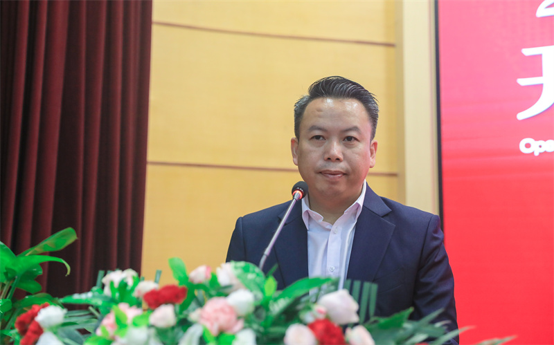 丁金昌致辞,他对2025级老挝留学生表示热烈欢迎,并回顾了学校与老挝教育与体育部职业技术教育司的合作历程、“中老育英丝路学院”建设以及老挝学历留学生培养成果,并对老挝留学生提出四点期望。一是志存高远,不惧风雨、向阳生长,勇敢面对挑战,不断超越自我;二是以开放之心,尊重差异、倾听不同,让文化的交流成为心灵的对话,让友谊如湄公河水般源远流长;三是积极融入校园生活,在课堂、社团和各类文化活动中勇敢展示自己,让青春因参与而闪亮,因尝试而多彩;四是不忘初心,牢记责任,好好学习,做中老友谊的使者,成为连接两国的坚实桥梁,用实际行动,为两国友好注入青春力量,续写中老情谊的新篇章。