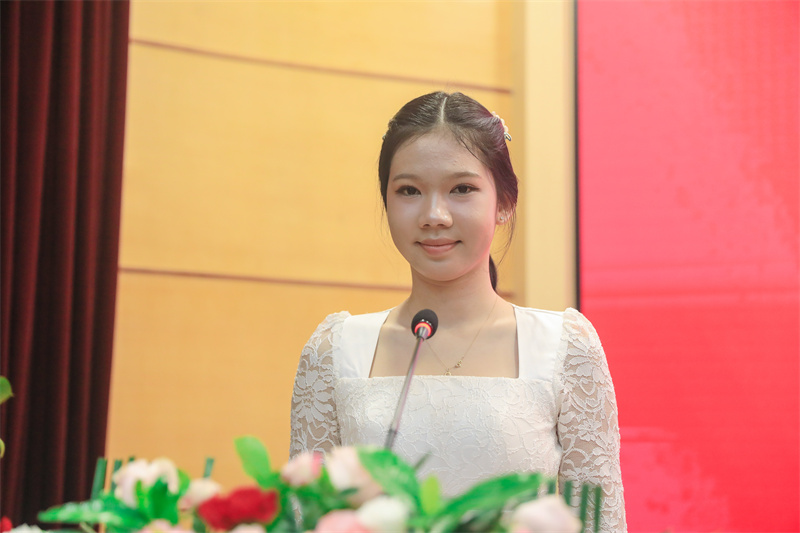 2025级老挝留学生代表宁美,任课教师代表葛秀华分别发言。