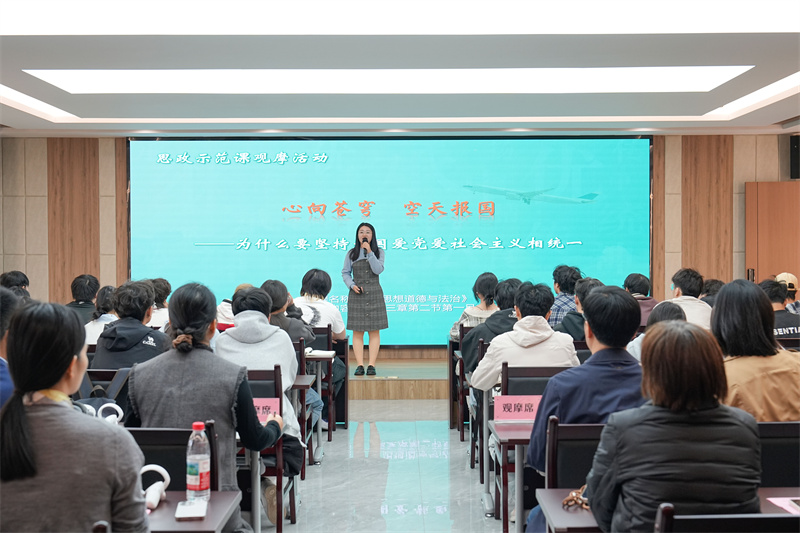 揭牌仪式后,还举行了思政课示范课观摩活动。杭职大桑璐老师以“心向苍穹 空天报国——为什么要坚持爱国爱党爱社会主义相统一”为主题,为师生带来了一堂生动且富有深度的思政课。课程通过案例教学、互动交流、AI虚拟、VR体验等形式,为思政课程教学质量提升提供了范例。