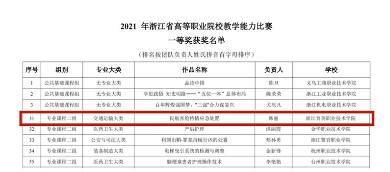 学院与吉祥航空航空公司合作开设“吉祥航空订单班”,与厦门航空合作开设 “厦航未来星班”及相关航空公司预备班,为航空公司培养优秀人才。专业学生连 续四年获得浙江省高职院校航空服务技能大赛一等奖。
