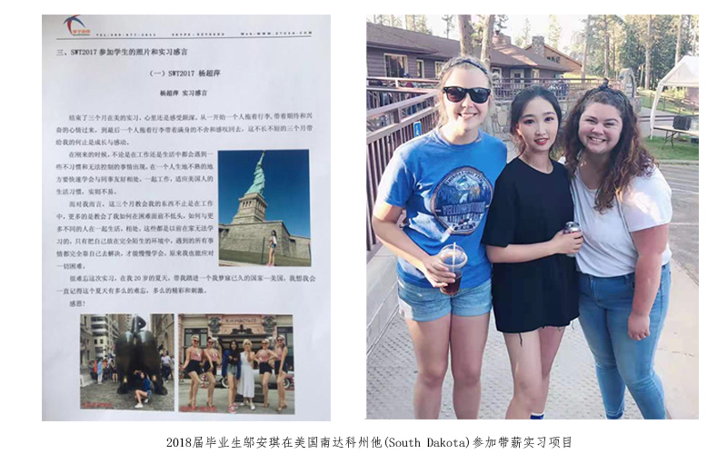 学院与韩国光州女子大学联合培养空乘学生,可选择攻读本科、研究生学历。2014年起学院组织学生参加美国带薪实习项目,拓展国际交流,提升国际视野,提高英语水平,增强就业竞争力。