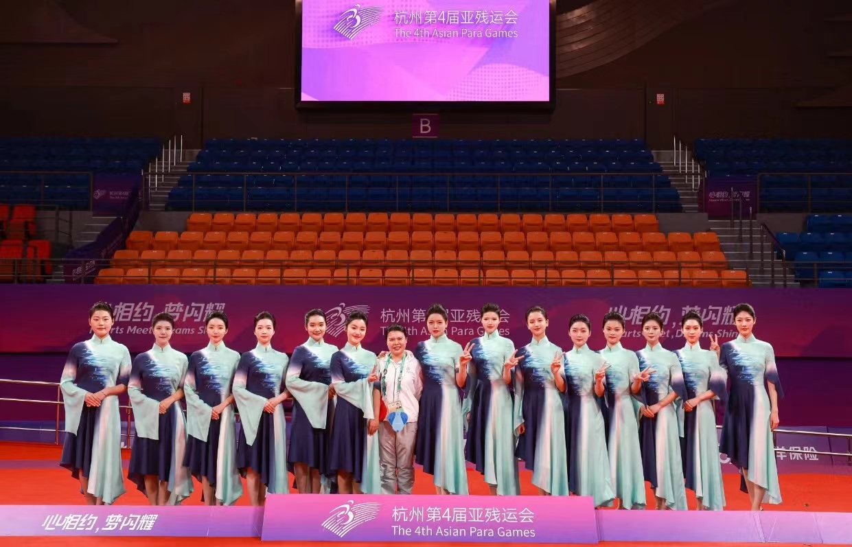 学生在杭州第4届亚残运会担任颁奖礼仪志愿者