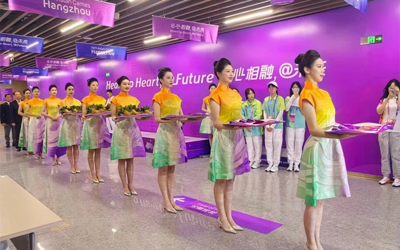 学生在杭州第19届亚运会担任颁奖礼仪志愿者