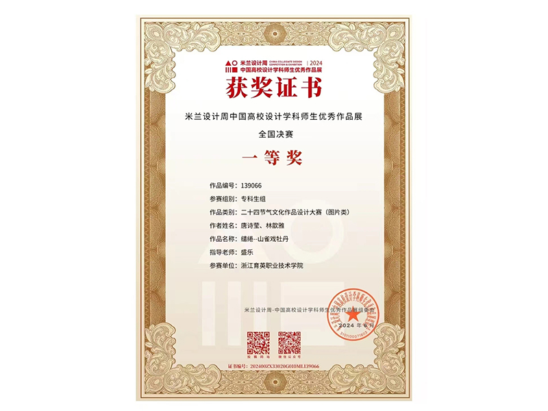 22形象A班唐诗莹获得第八届米兰设计周二十四节气命题赛道国赛一等奖